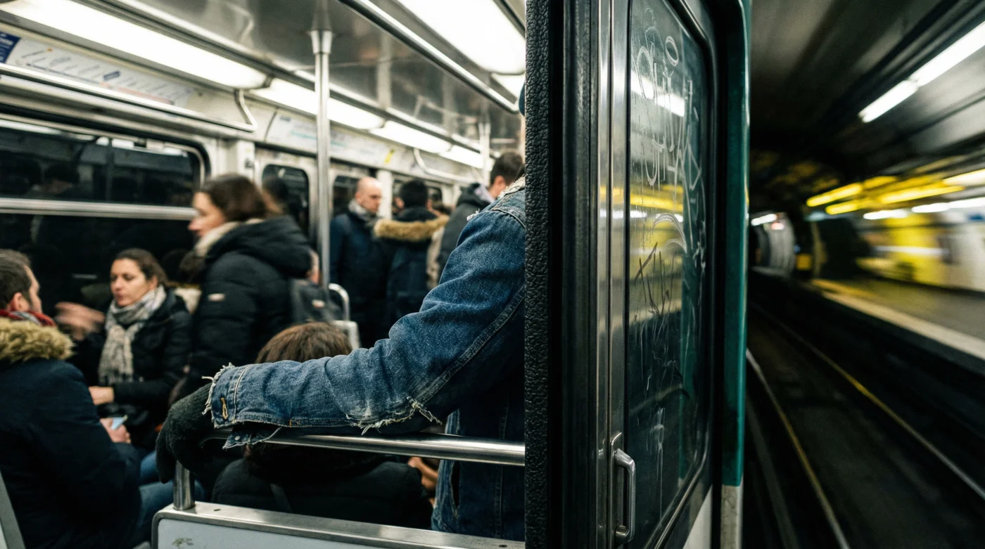 Eppure, se osservi con attenzione le dinamiche del vagone, c’è un contrasto netto tra la rigidità contratta del visitatore occasionale e la fluidità silenziosa di chi quella rete la naviga ogni santo giorno. In mezzo al caos sotterraneo e agli spintoni inevitabili, il parigino osserva rilassato, mollemente appoggiato contro il vetro freddo. Non c’è alcuna ansia visibile nei suoi movimenti, nessuna stretta compulsiva o nevrotica sulle cerniere interne del suo cappotto invernale.